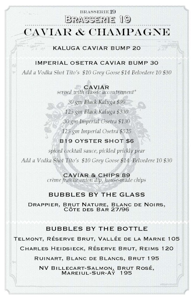 An indulgent pairing of bubbles and luxury, designed the Brasserie 19 way. Enjoy a curated selection of champagnes alongside premium caviar service.